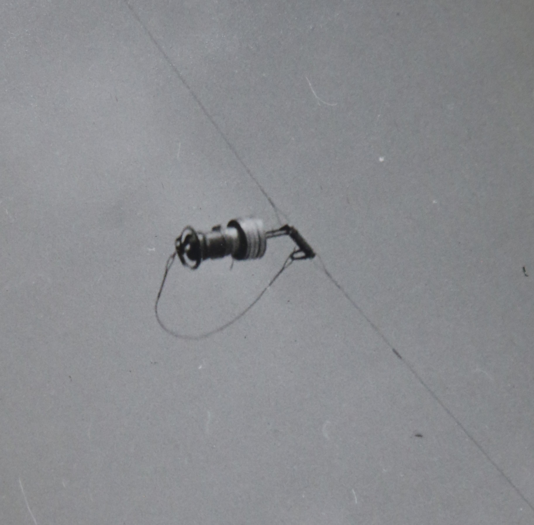 It was attached to a wooden hand held winch with a week shear link. It was fitted with a dummy bomb to simulate real war conditions.